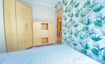 Mieszkanie jest kompletnie umeblowane i wyposażone w sprzęt AGD (lodówka, płyta, piekarnik) oraz pralkę. Wszystko gotowe – wystarczy wnieść walizkę.